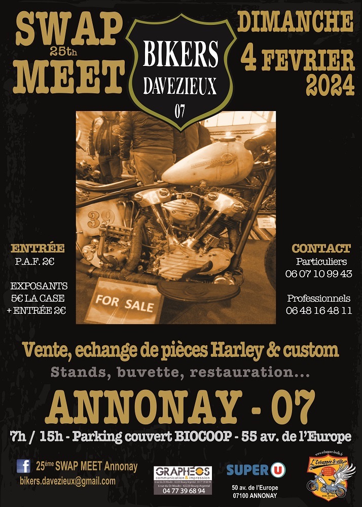 Vente et échange de pièces Harley-Davidson et custom de 7h à 15h