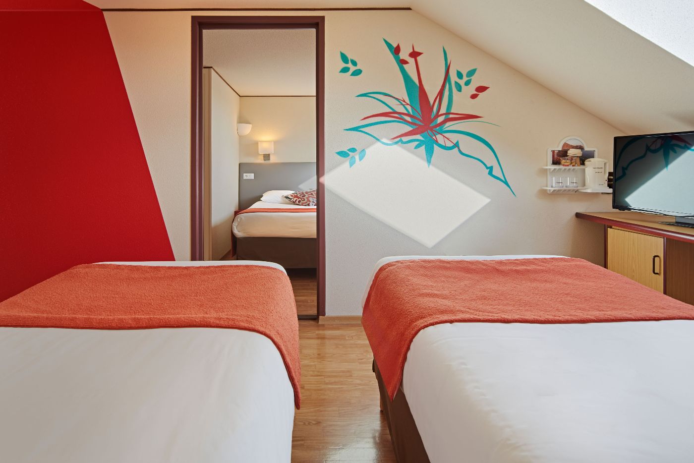 Si leur surface est standardisée (15 m2), leur agencement, lui, s’adapte aux demandes : double, twin, familiale (chambres communicantes), accès PMR, etc.
