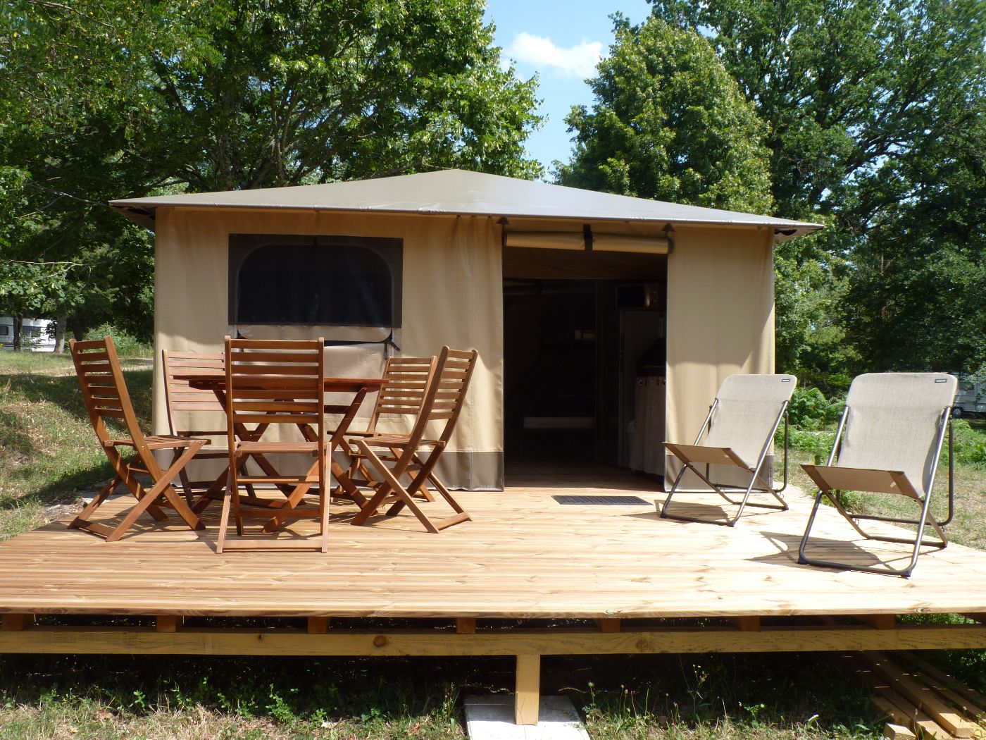 Il propose différentes formules d'hébergements : des chalets, spacieux et fonctionnels avec une terrasse abritée, des mobil-homes offrant un grand confort, un gîte de groupe pour 15 personnes, des tentes Lodges équipées.