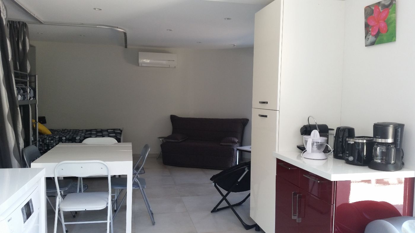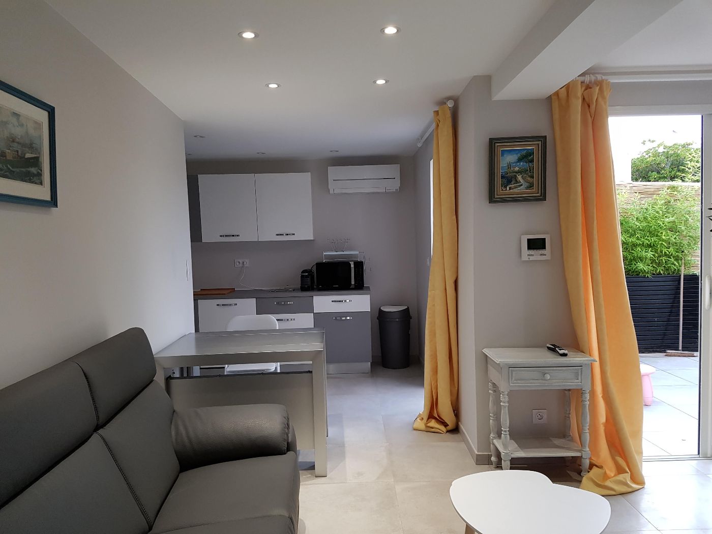 Studio rénové, de 39 et 55 m², au rez-de-chaussée d'une résidence calme, située à 60 m de la mer via un accès privé.