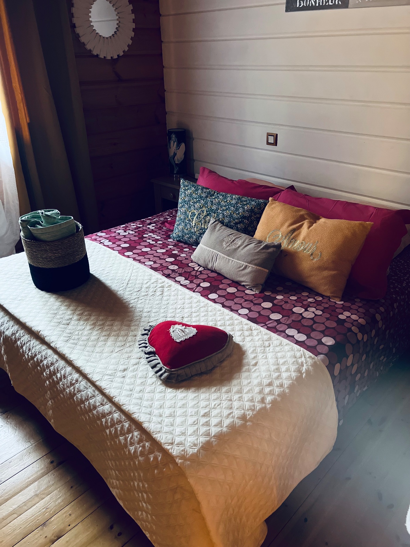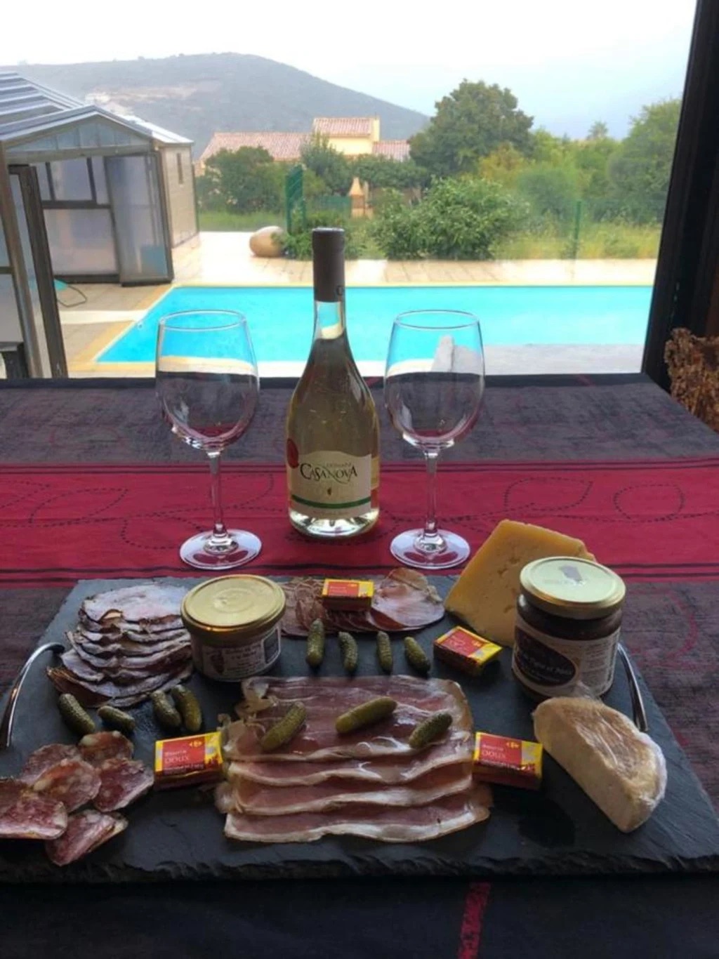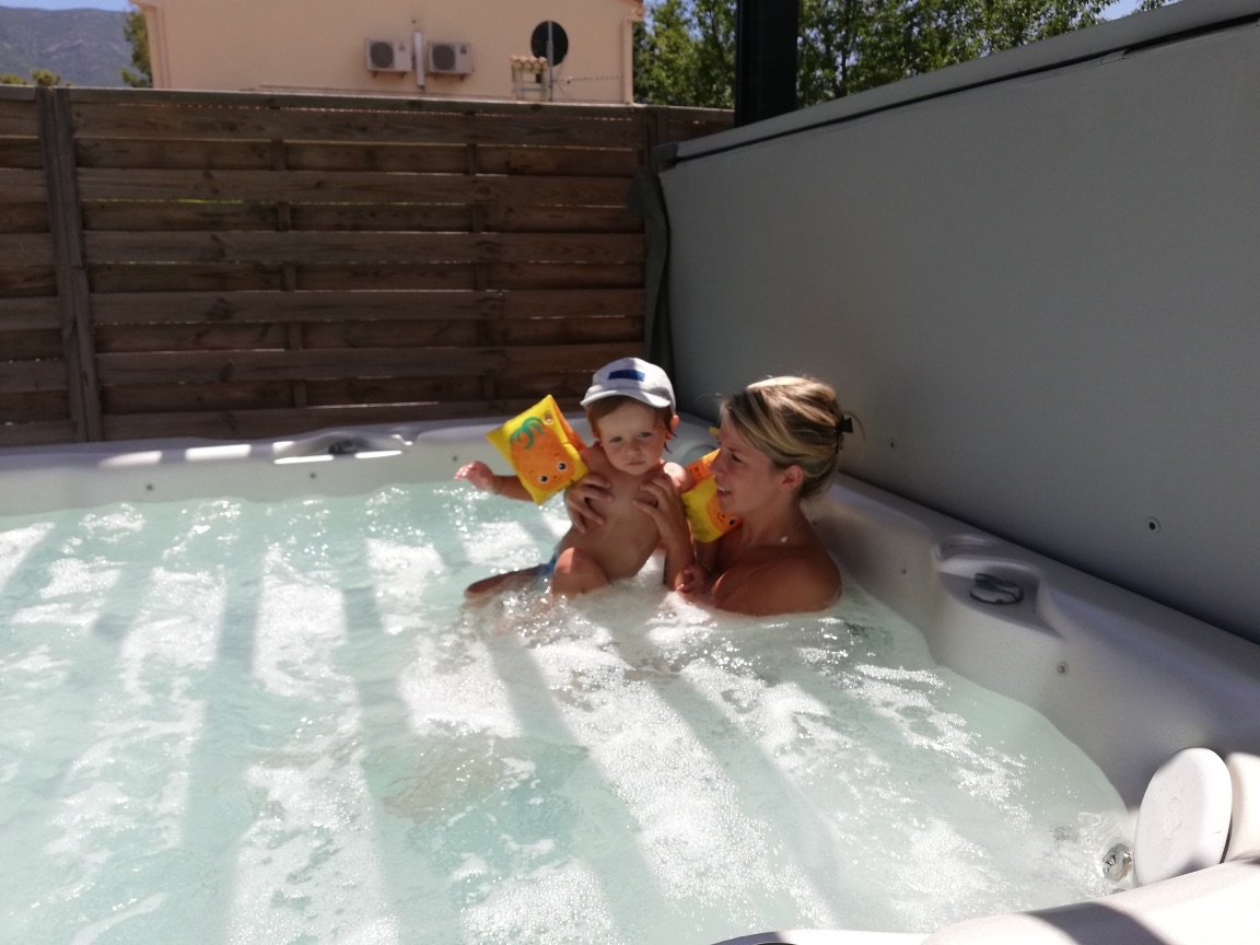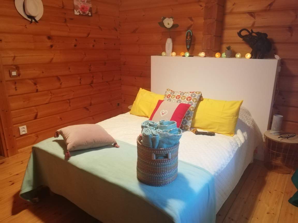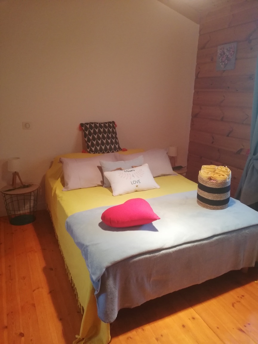 Cette chambre avec vue piscine, comprend un lit en 140, un clic clac de 140cm, une télévision écran plat , adaptateur portable le wifi, 4 serviettes de bain , 2 petites serviettes et 2 peignoirs.