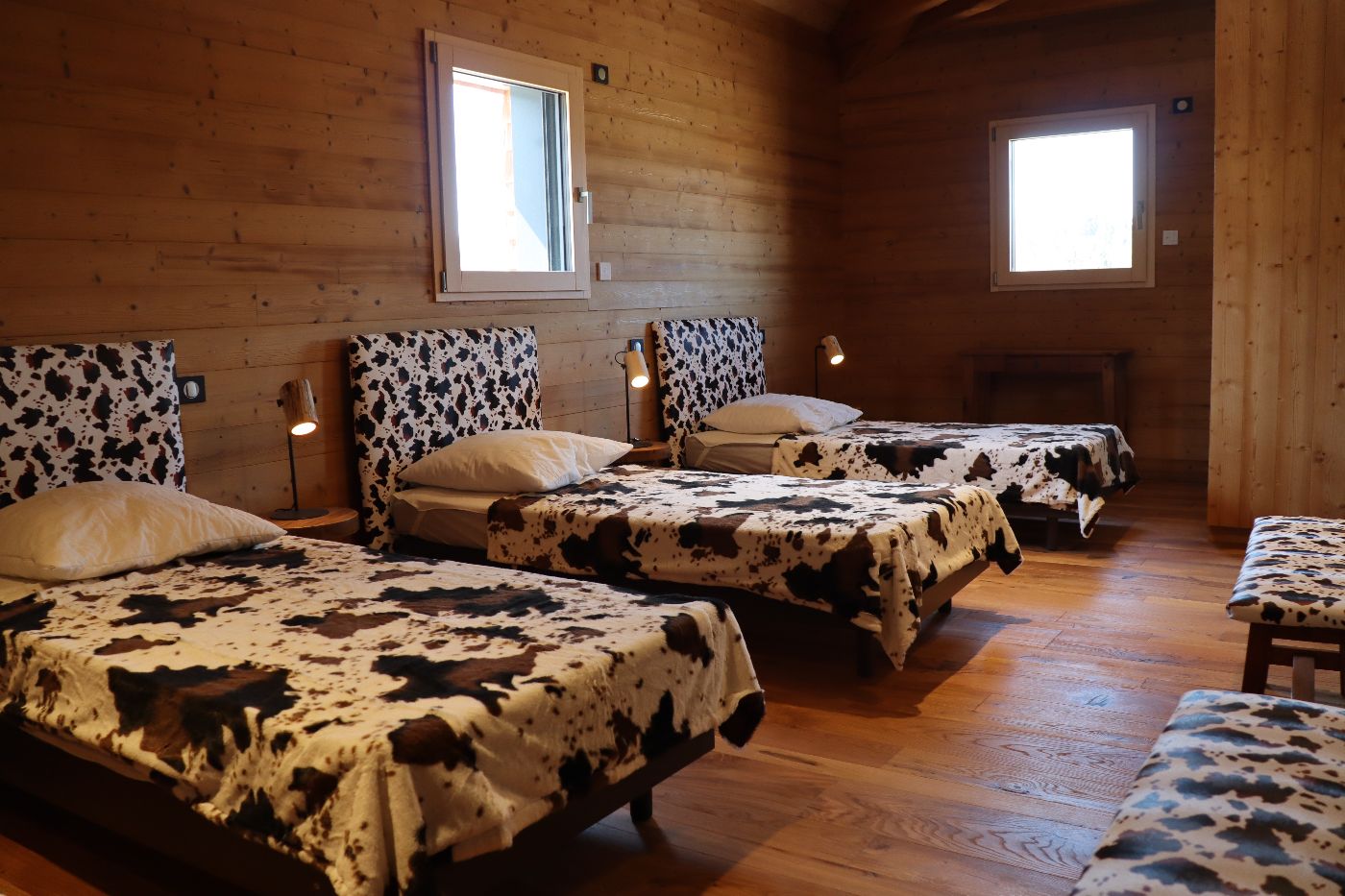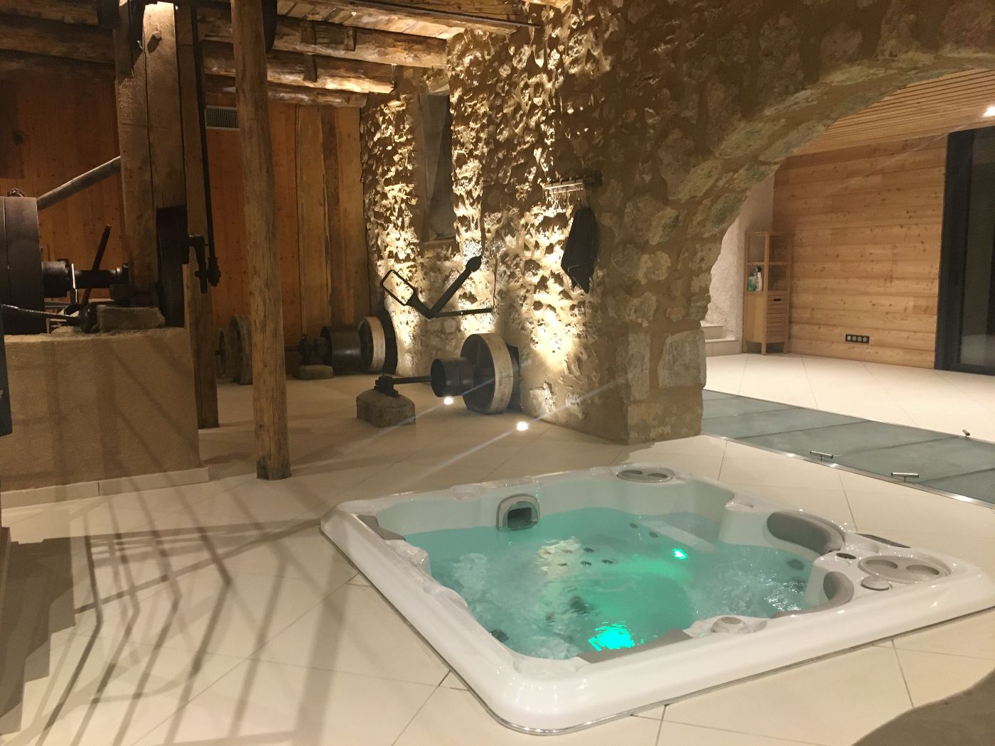 Très confortable, avec de grands volumes, le gîte est composé de 8 chambres avec 7 salles d'eau attenantes, un grand séjour, une salle de détente comprenant spa, sauna et surtout un garage fermé pour les 2 roues.