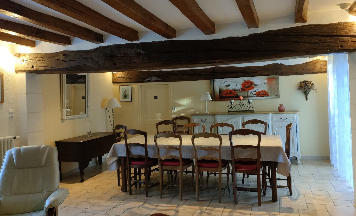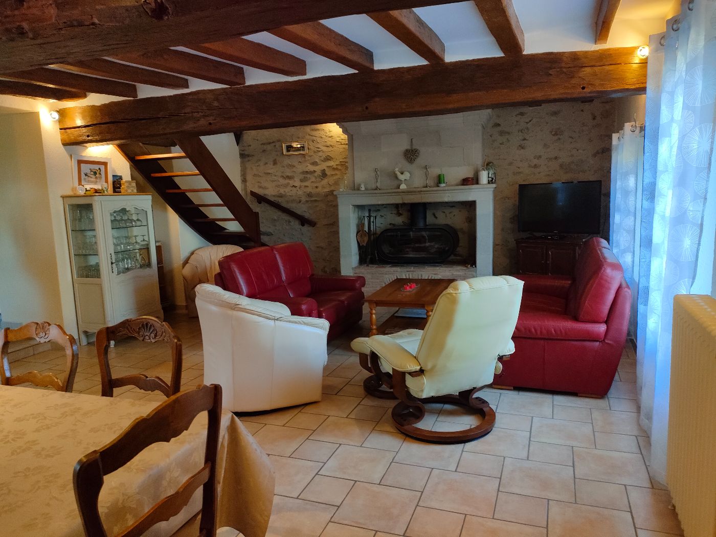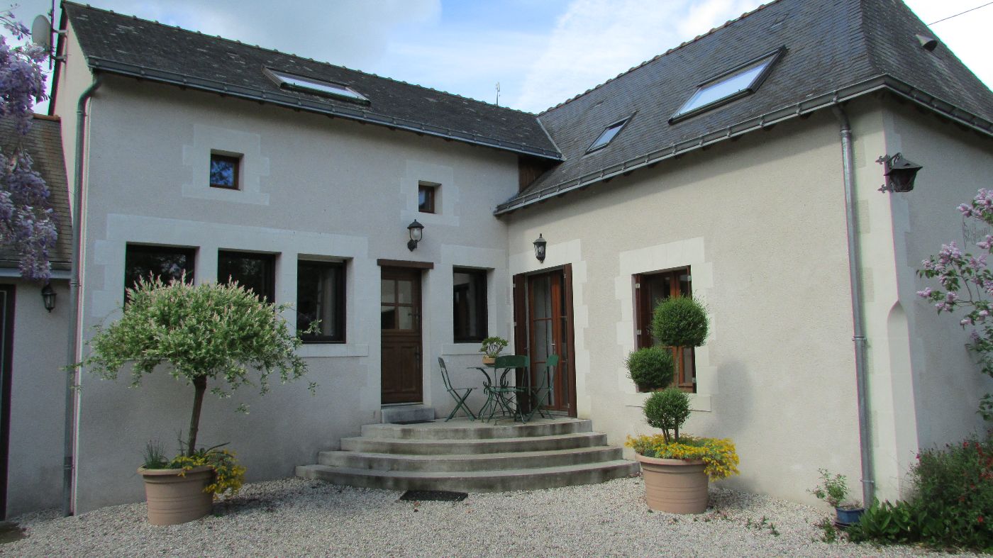 Construit et aménagé à partir d'une ancienne fermette, vous retrouverez des anciennes poutres apparentes dans une belle pièce de vie de 40 m2 avec une cheminée angevine.
