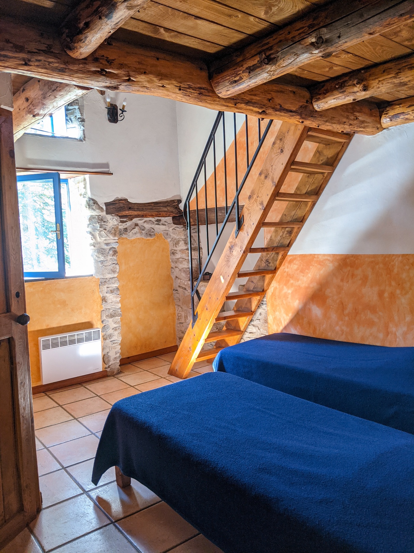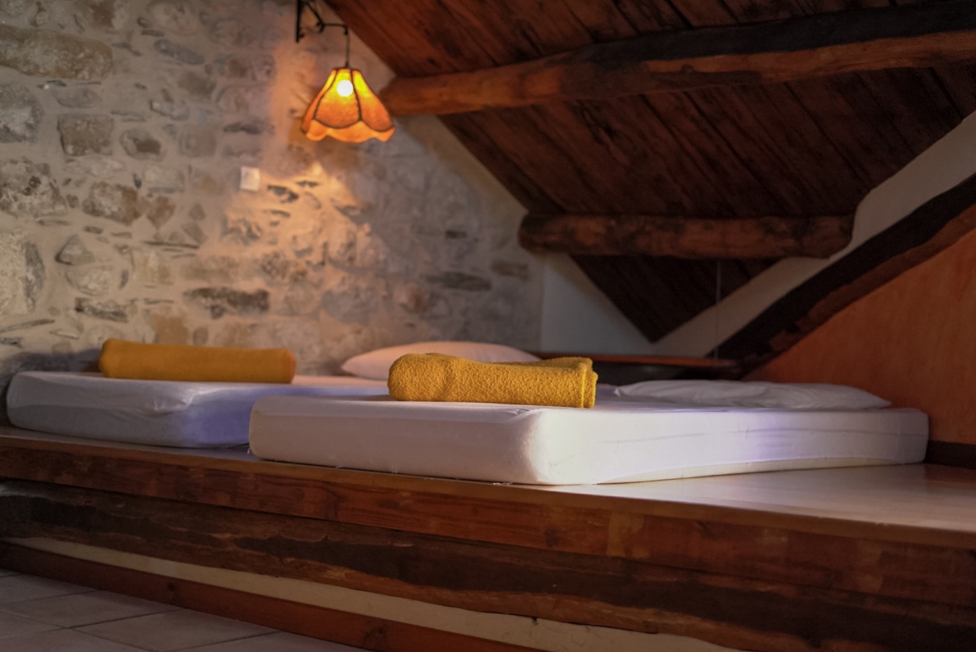 Les 3 chambres avec chacune leur salle d'eau sont confortables grâce aux mezzanines. Le jardin est vaste avec tables barbecue et hamacs et des cabanons permettent d'abriter les motos. Les gites ruraux complètent l'accueil jusqu'à 30 personnes.