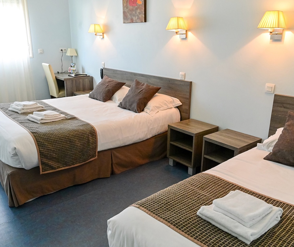 L’Hôtel Du Parc vous propose des chambres pour une ou deux personnes. Elles sont équipées d’un lit double (140 cm ou 160cm), d’une salle d’eau avec douche et toilettes, de la télévision LCD, du WIFI et d’un bureau avec chaise.