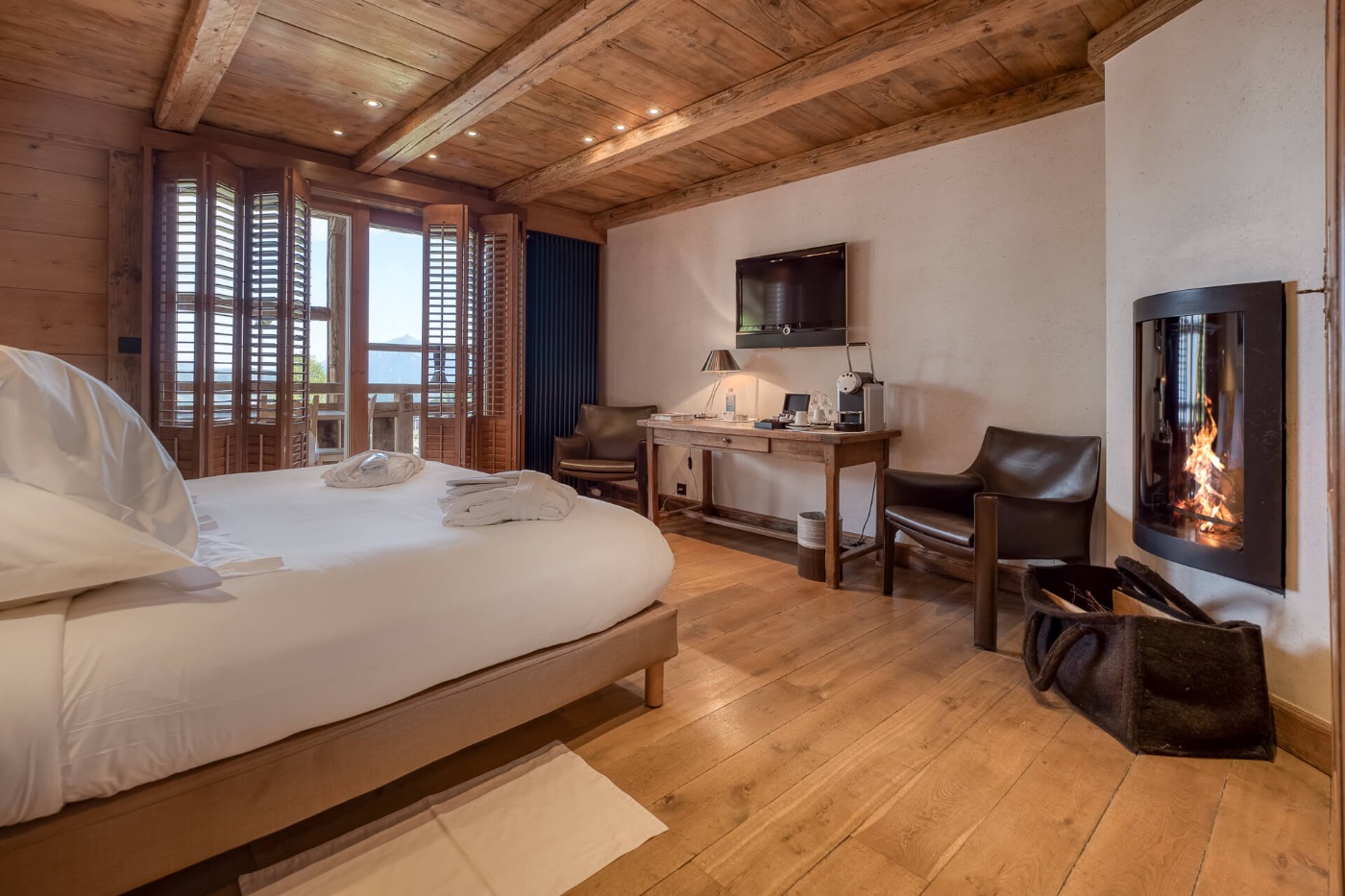 Découvrez également nos Chambres Prestiges, situées dans notre bâtiment principal, à La Ferme, où l'authenticité des anciens chalets savoyards se marie en parfaite harmonie avec le luxe contemporain.
