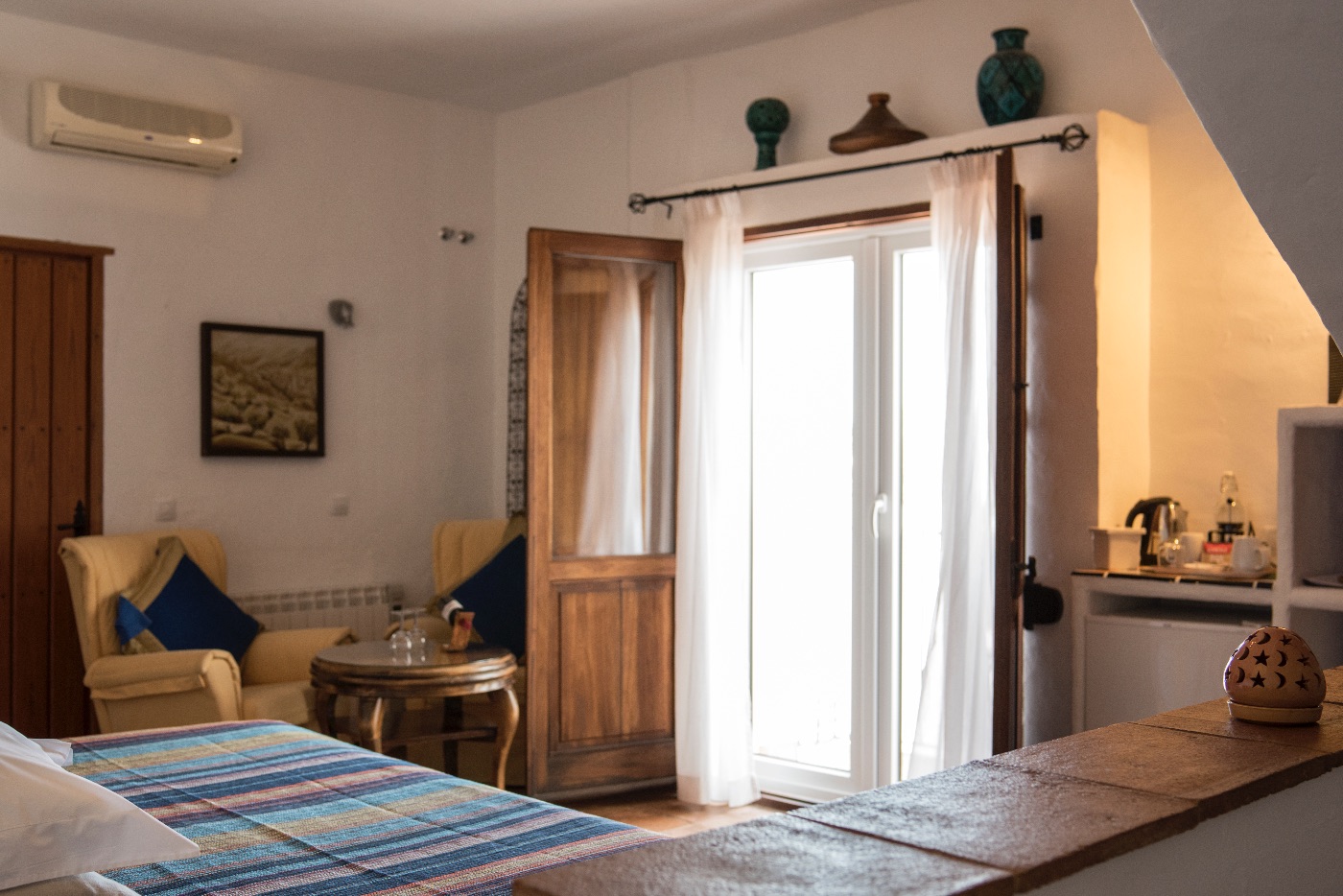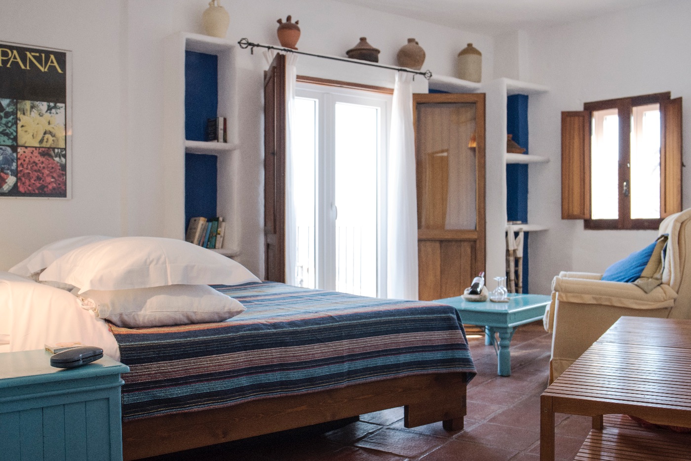Les six chambres de Los Castaños se ressemblent, mais chacune est unique et différente. Bien qu'elles soient toutes meublées et équipées avec le même soin, chacune offre une perspective différente. La chambre Sunrise, par exemple, offre une vue magnifique sur les montagnes depuis le lit, tandis que la chambre Mountain View offre une vue panoramique sur la Serrania de Ronda depuis le balcon. La chambre Curro Comacho offre une vue similaire, mais sa disposition et son décor lui confèrent une atmosphère très différente. La chambre Village, comme son nom l'indique, est un excellent point de vue sur le village pour observer les allées et venues dans la mairie et sur la place.