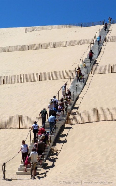 Prenez votre souffle et grimpez les 110 mètres de la dune, depuis la plage par une pente douce, ou depuis le parking d'accueil, côté forêt, par une pente certes très raide, mais équipée d'escaliers en bois pour vous y encourager. Il faut savoir que la dune ne cesse de reculer, sous l'influence des vents et des marées et qu'il y a des endroits hautement préservés.