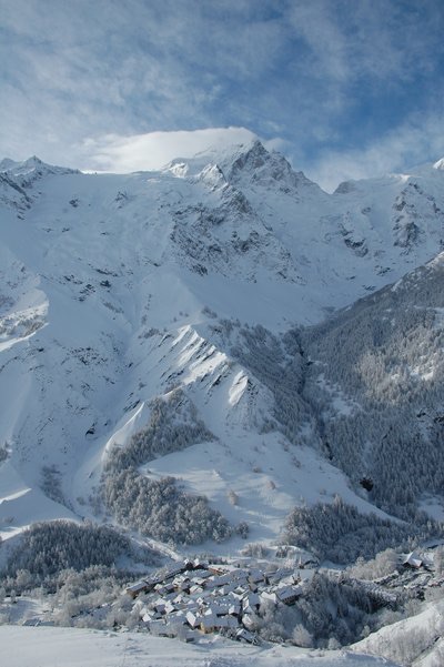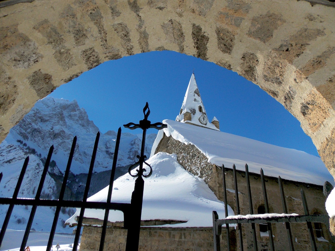 Les robustes maisons du XVIIe S sont faites de blocs de schiste ou de tuf liés par un mortier à base de terre, les toits, parées d’ardoise ou de lauze. Les « trabucs », ces ruelles à l’ancienne qui tissent un étroit réseau entre les habitations, vous mèneront en haut du village, vers la ravissante église Notre-Dame-de-l’Assomption. De style romano-lombard, elle jouxte la chapelle des Pénitents Blancs et le cimetière où reposent, sous de simples croix de bois, les naufragés de la montagne. De là, le point de vue sur le massif des Ecrins, par-dessus la Romanche, est un vrai régal.