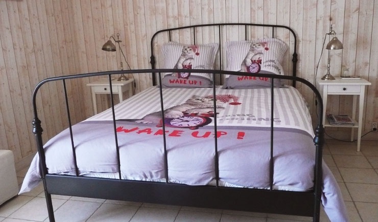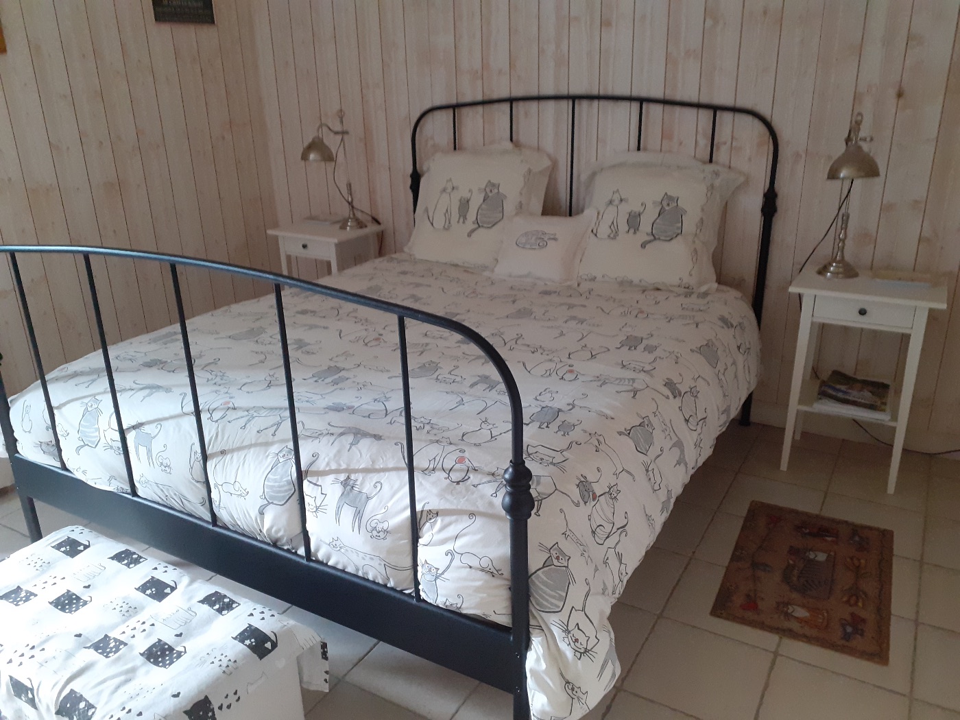Au rez de chaussée, entrée indépendante, la chambre CHAT, pour 2 personnes, comprend un grand couloir, qui désert une chambre avec lit 160, un wc indépendant et une salle d'eau. Linge de lit, de toilette et de piscine fourni. Accès jardin, piscine et SPA à raison d'une séance par jour. Inclus dans la prestation un petit déjeuner pour 2 personnes.