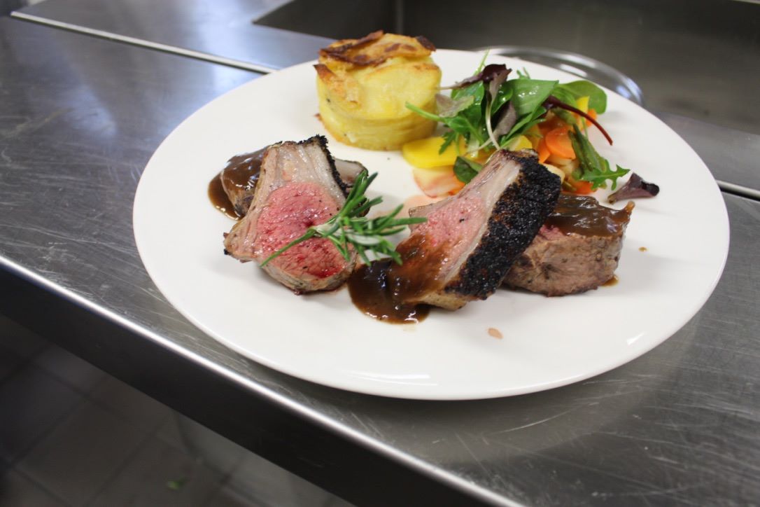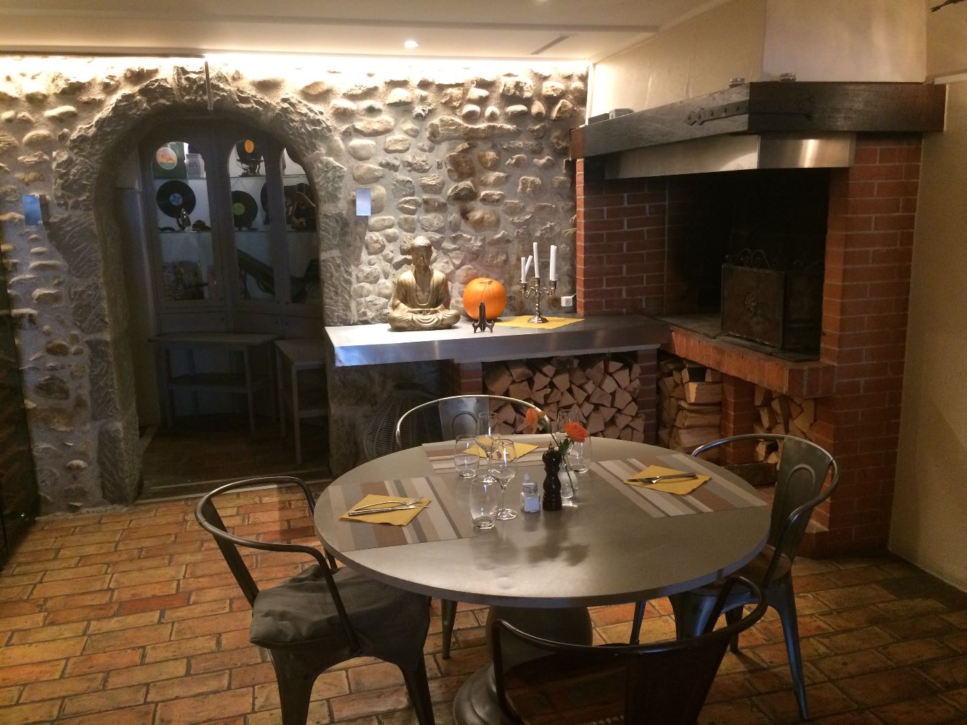 Les délicieuses viandes sont cuites dans la cheminée en hiver ou, en été, servies sur la belle terrasse à deux pas du lac Léman.