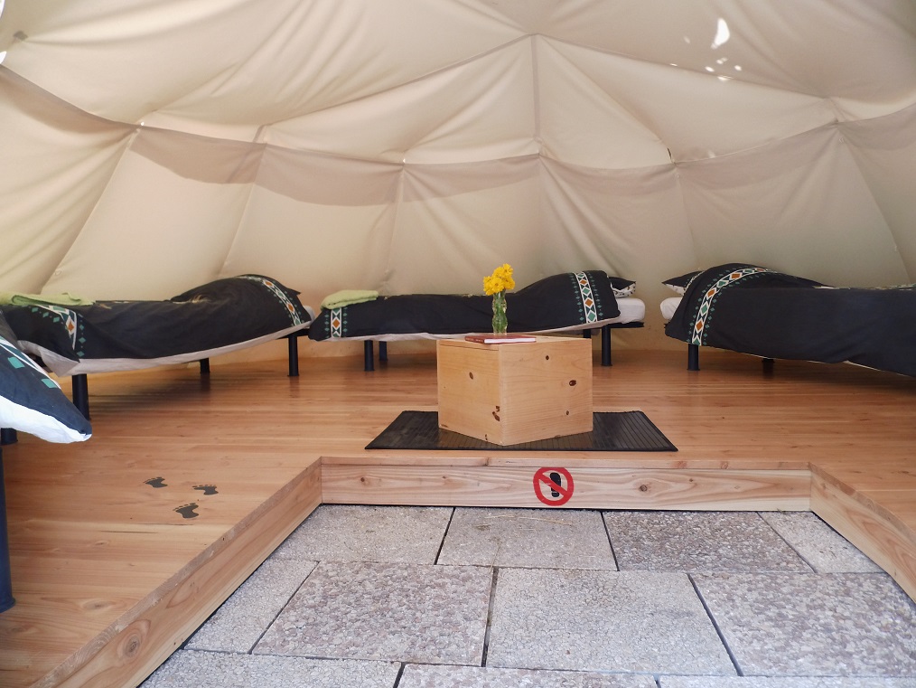 Les Cachettes du Dahut vous proposent 2 tipis de 5 places avec (vrais) lits. Possibilité de faire un couchage double.
