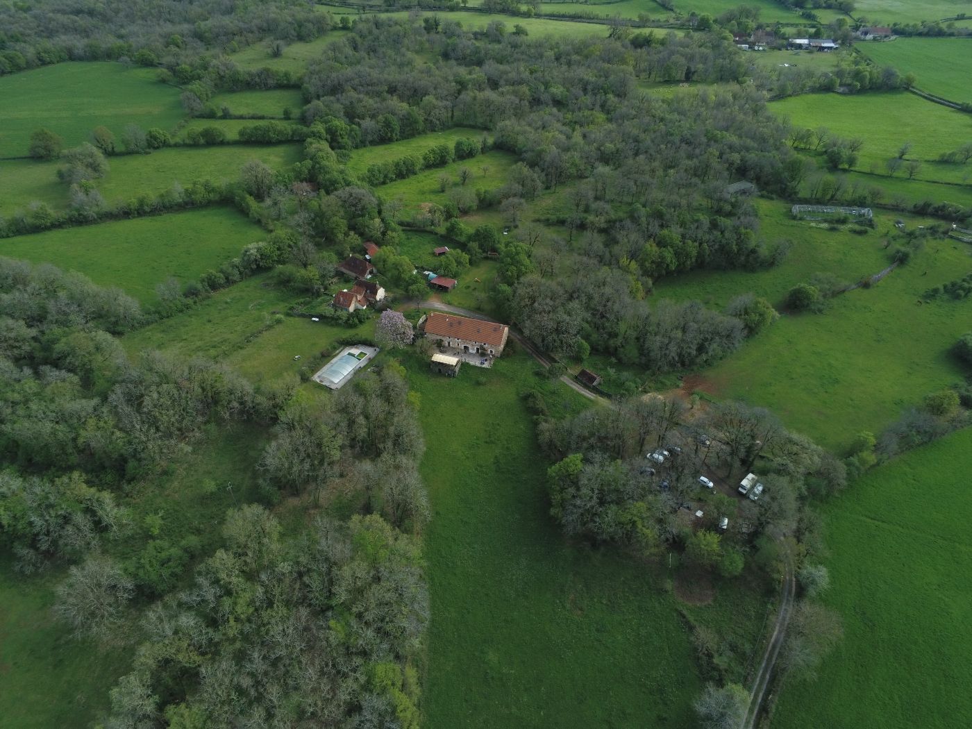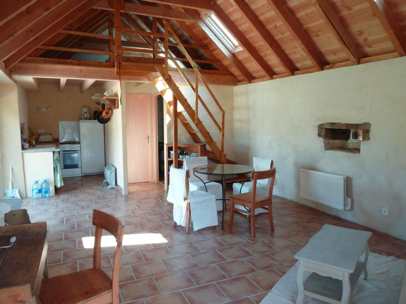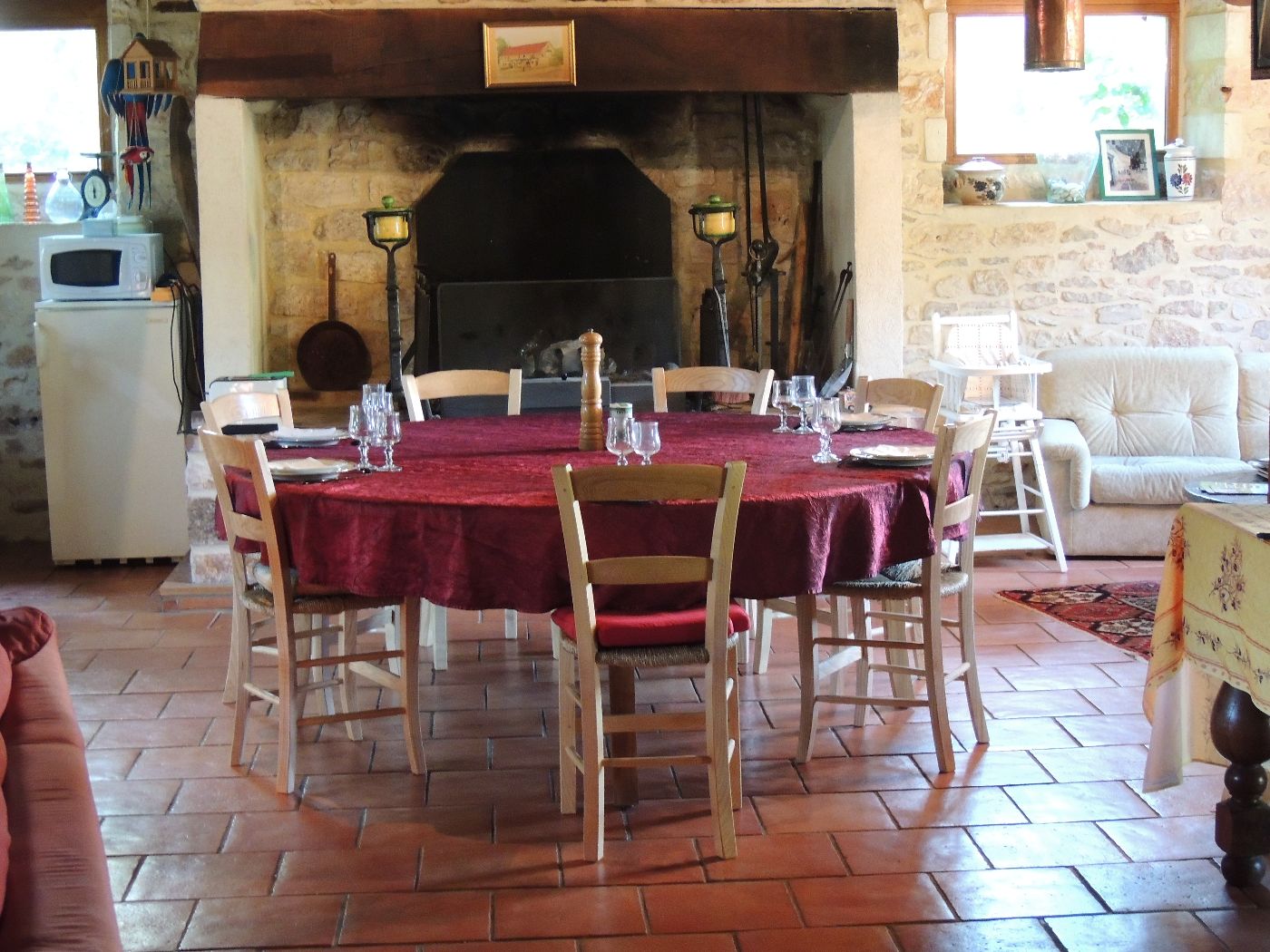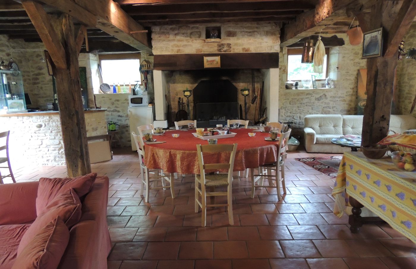 Une grande salle de réception pour les petits déjeuner et la table d'hôtes, ou un moment de détente. Une grande terrasse donnant sur les prés avec salon de jardin. La propriété se trouve a 400m de la route "principale" (D25).
