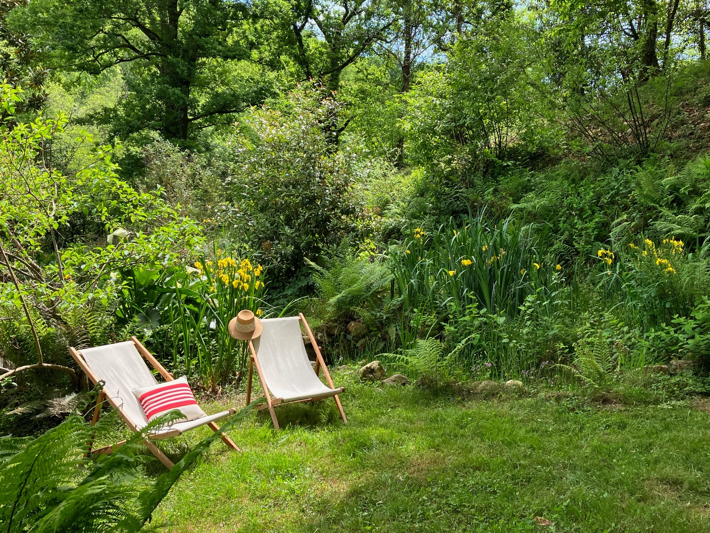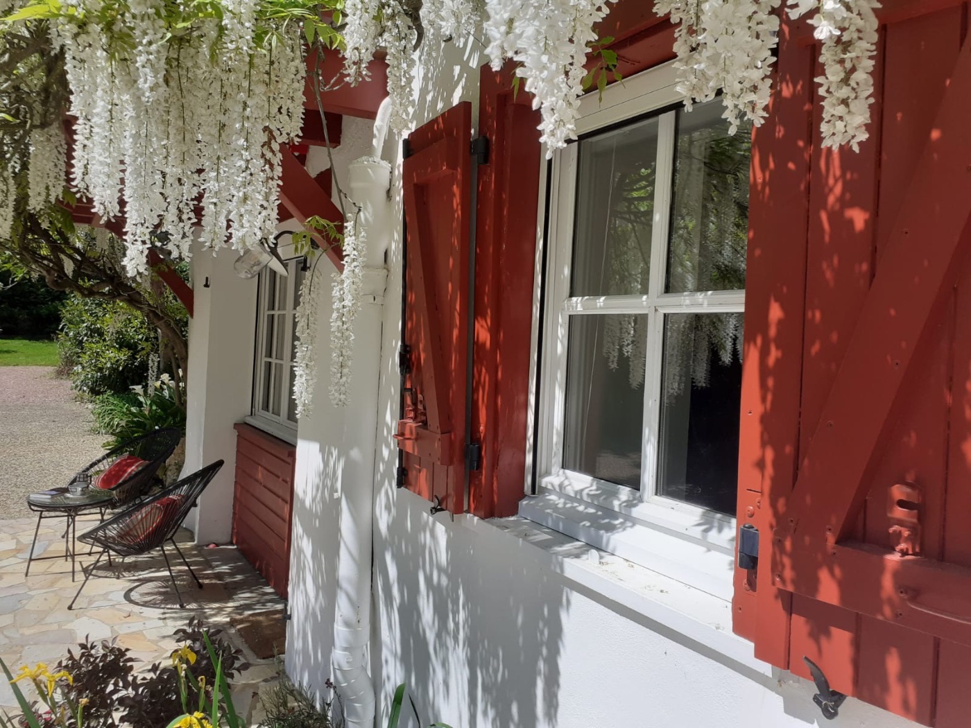 La magnifique glycine qui court sur la façade aux volets rouges constitue un parasol naturel aux beaux jours apportant ombre et fraîcheur pour flâner sur la terrasse.