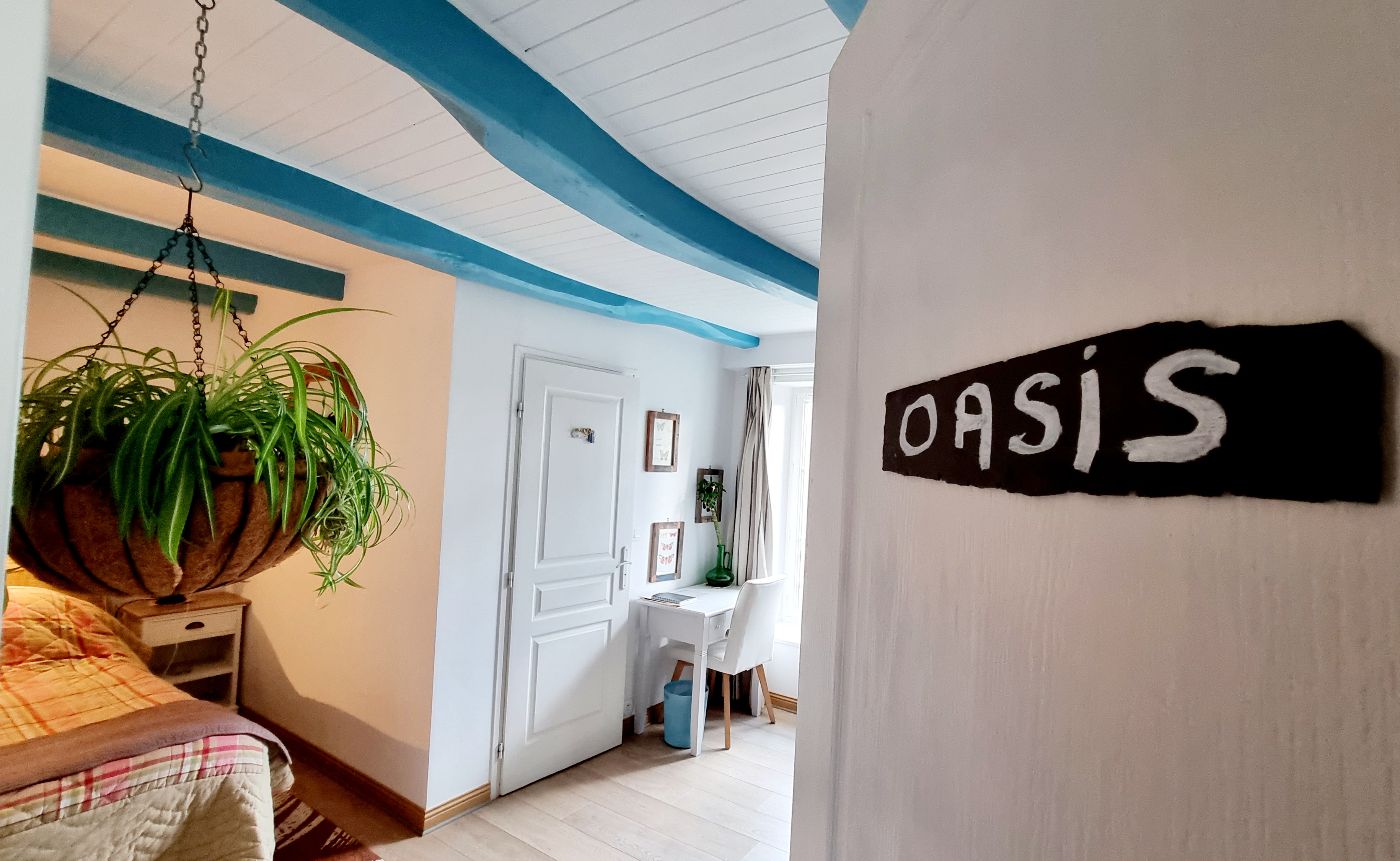 La chambre Oasis, 17m2, est située dans la maison principale avec un accès indépendant. Elle est équipée avec TV, WIFI, plateau d'accueil, Mini frigo, salle de bain privative. Elle donne vue sur le jardin.