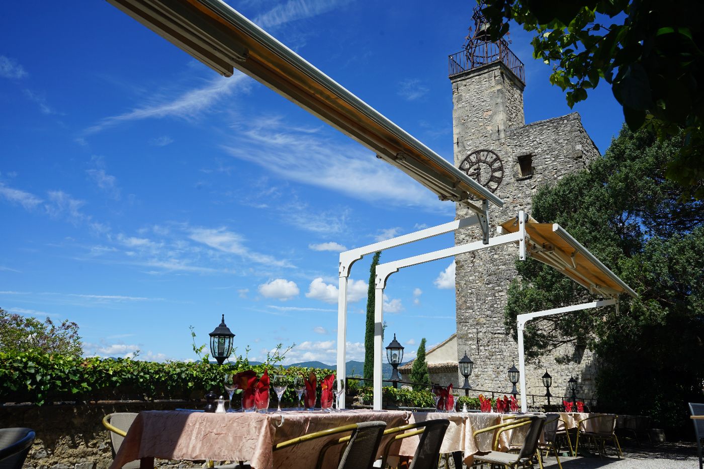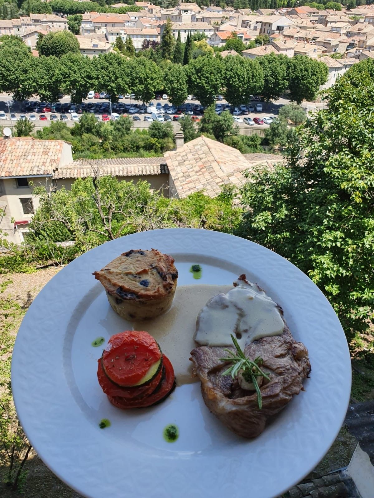 Dès les beaux jours, les repas sont servis sur "les Terrasses du Beffroi", dont les jardins dominent la ville nouvelle.