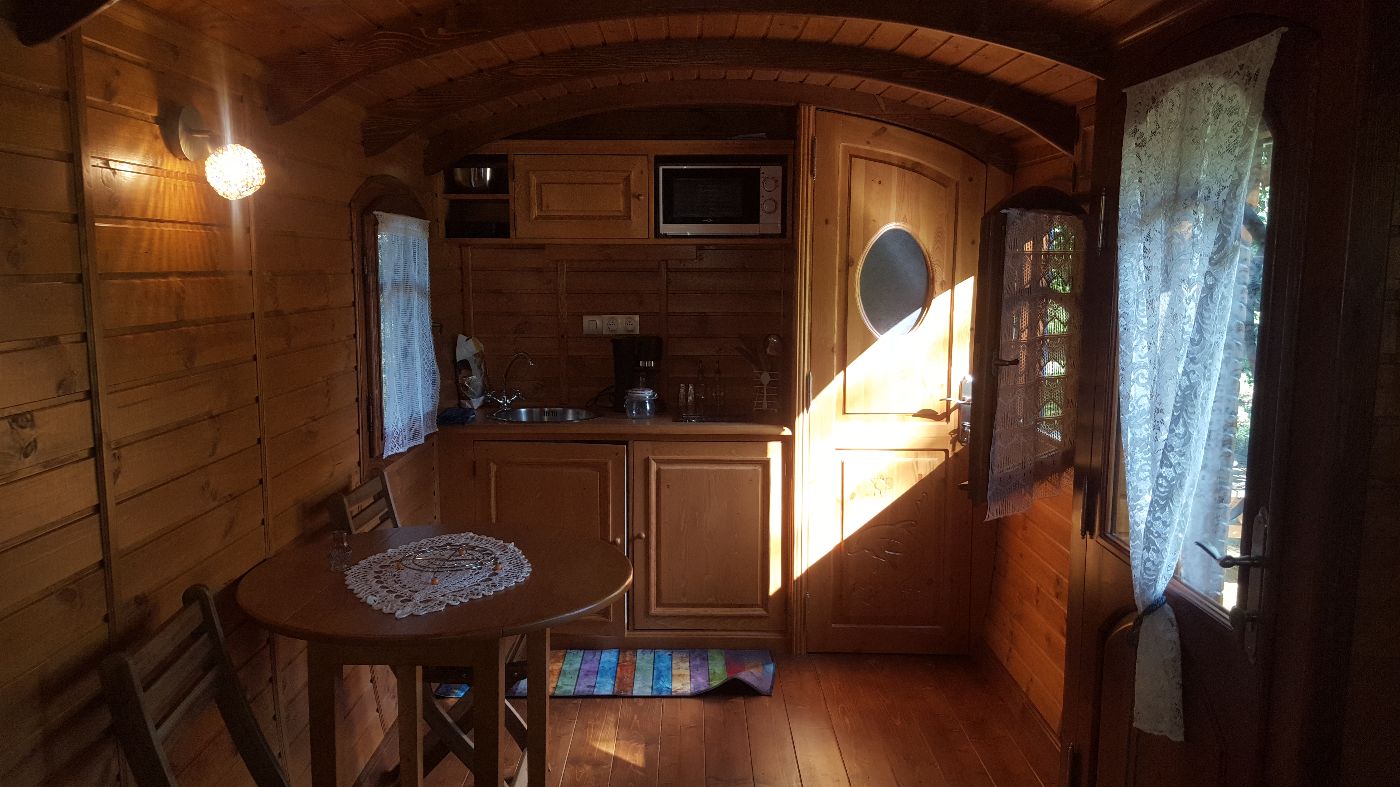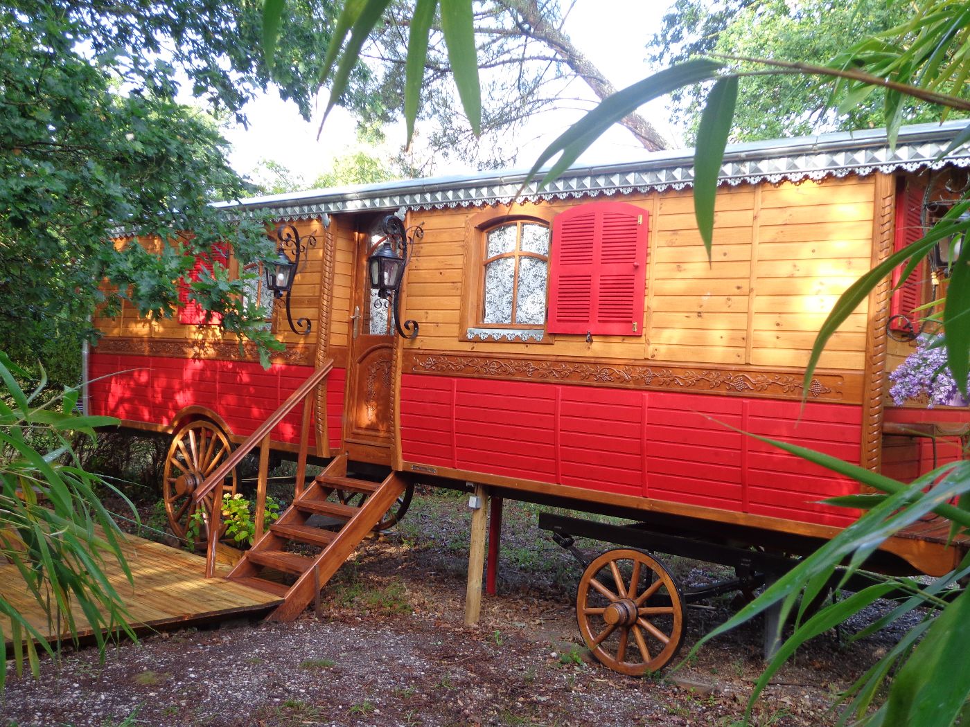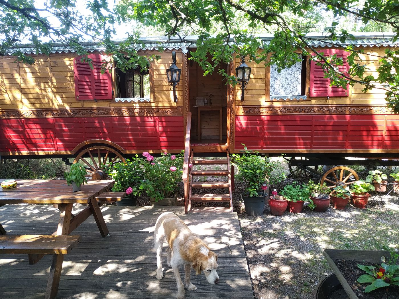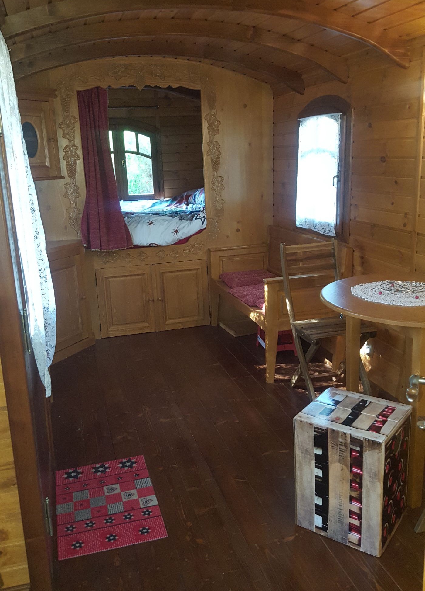 Gîte en roulottes traditionnelles arrivées directement de Roumanie, fabrication entièrement artisanale.