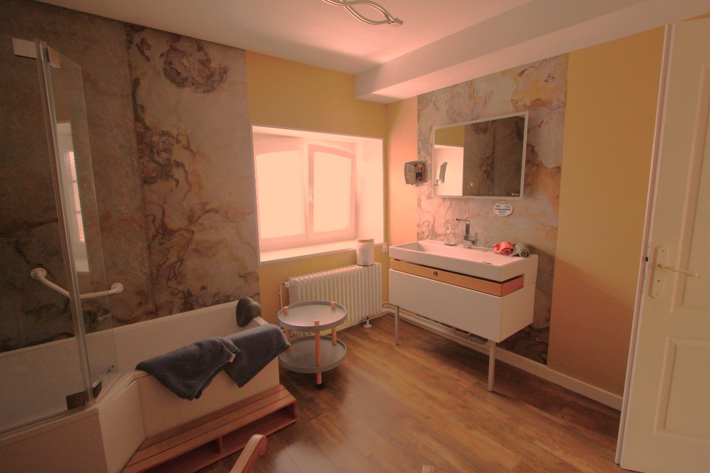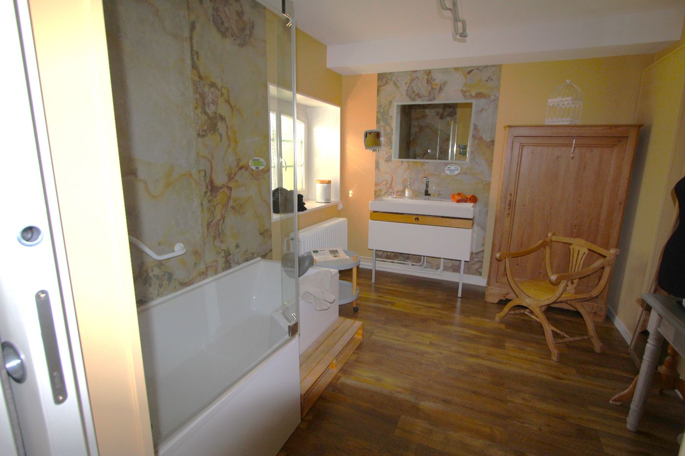 Lit King Size, bureau , plateau de courtoisie et salle de douche avec vasque et WC structurent cet ensemble climatisé de 25m2 situé au 1er étage.