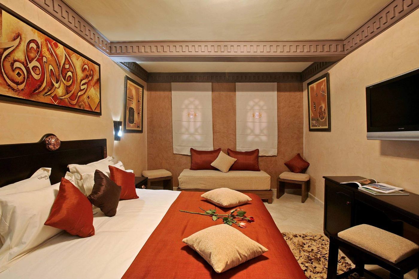 La VILLA AÏA vous offre dès l´entrée, le luxe de deux salons marocains où vous pourrez vous détendre du matin au soir et d´un restaurant d’une capacité de 22 personnes où vous mangerez de bons plats traditionnels.